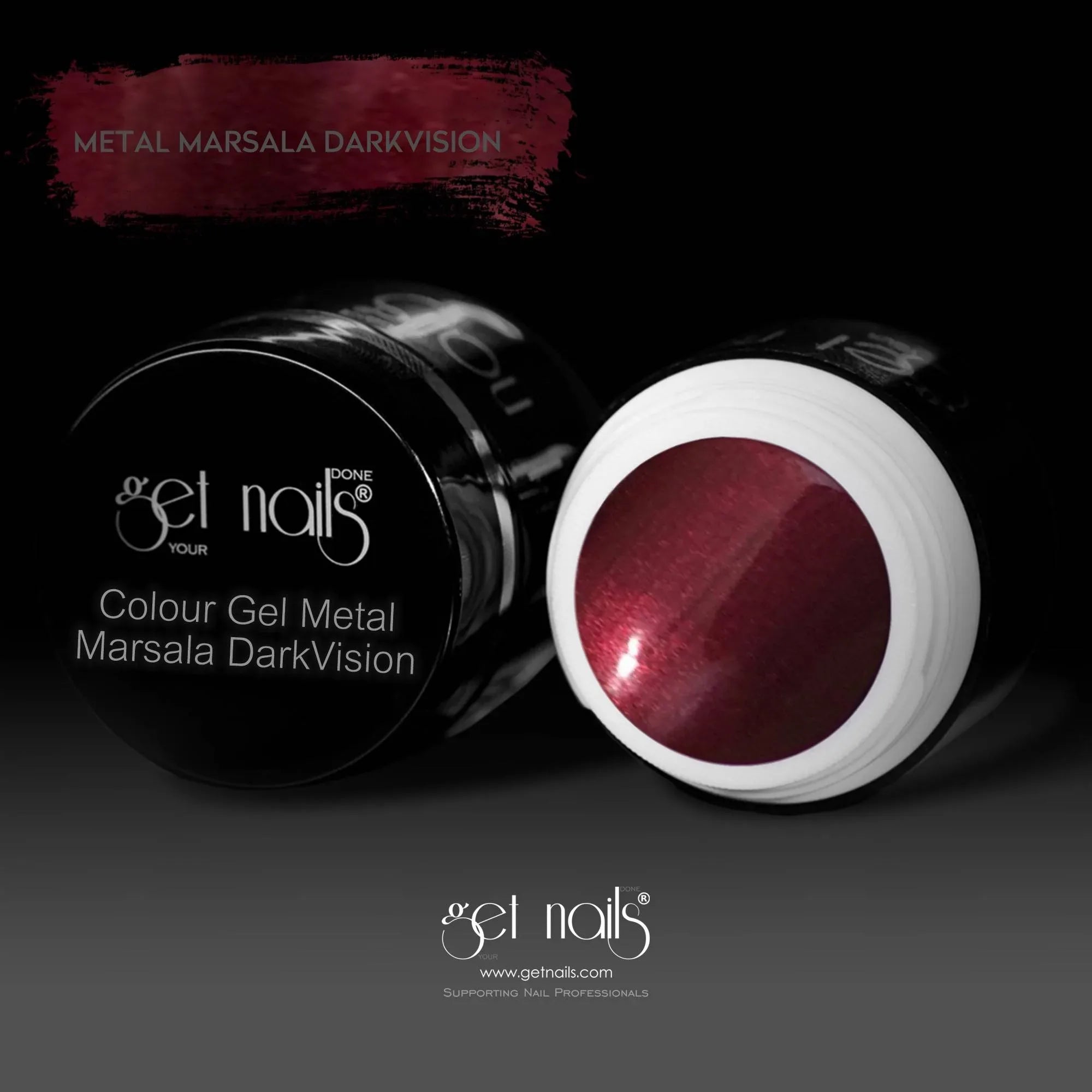 Colour Gel Metal Marsala DarkVision 5g de la GET NAILS este un gel colorat profesional cu efect metalic, perfect pentru manichiuri sofisticate si de impact.