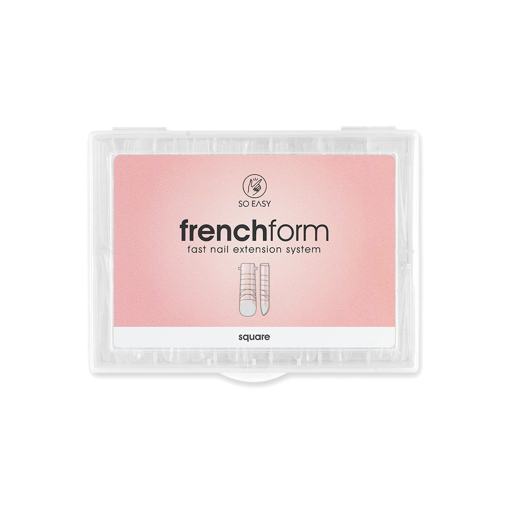 Display French Form – Square sunt tipuri Dual Form, create special pentru realizarea unui french perfect în reconstrucția unghiilor de formă pătrată și pentru tehnica french cu muretto, folosind metoda inovatoare SO EASY. Fiecare pachet conține 120 de bucăți în 12 dimensiuni diferite, dotate cu linii ghidaj pentru o reconstrucție corectă a unghiilor. Acestea pot fi folosite în combinație cu SILICON SHAPE, forme din silicon care permit realizarea unei manichiuri french impecabile, rapid și ușor. Utilizând aceste tipuri Dual Form pentru french, vei reduce timpul de reconstrucție a unghiei, obținând rezultate perfecte și eliminând aproape complet procesul de pilire, atunci când sunt folosite cu sisteme de Gel și Acrylic Gel, permițând reconstrucția rapidă a unghiei.