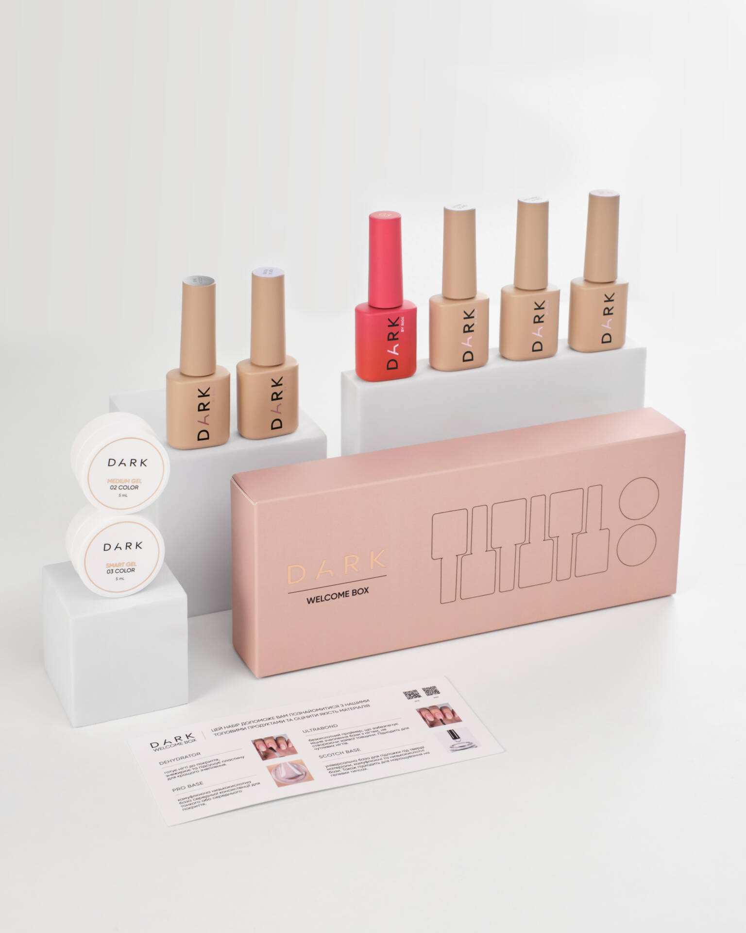 Welcome Box DARK este setul perfect pentru a te familiariza cu produsele brandului. Conține cele mai populare materiale, oferindu-ți ocazia să testezi calitatea, textura și performanța formulelor profesionale DARK.